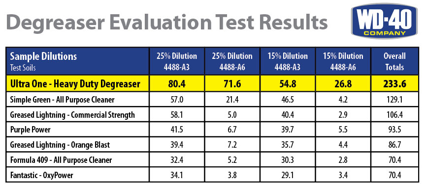 UltraONE® había demostrado ser un potente, eficaz y seguro limpiador que luego de los ensayos y pruebas realizadas por la autoridad portuaria de NY/NJ impulsarón el producto a ser lanzado al mercado industrial y su presentación al consumidor luego de arduos y continuos ensayos y pruebas en variadas industrias, donde demostro su increíblemente, asombrosa y potente capacidad segura y respetuosa con el medio ambiente y las personas. En 2007, justo antes de la crisis financiera, WD-40 estaba realizando estudios de producto independiente para una posible compra de Ultra One Corporation mientras que la crisis financiera congelo todos los nuevos emprendimientos en marcha por parte de WD40 en aquel momento, los resultados fueron claros UltraONE® fue el mejor y más importante desengrasante limpiador entre los productos del mercado, ofreciendo seguridad y eficacia.